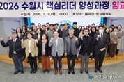 [경기남부뉴스 김정옥 기자] 수원특례시는 15일 아주대학교 율곡관에서 ‘2026년 제12기 수원특례시 핵심리더 양성 과정 입교식’을 열었다. 입교식에는 이재준 수원특례시장, 최기주 아주대학교 총장, 권혁성 아주대학교 공공정책대학원장, 6급 공무원 교육생 35명 등이 참석했다. 수원특례시 핵심리더 양성 과정은 시정을 선도할 중간관리자급 핵심 인재 양성을 목표로 하는 장기 교육과정으로 12월 1일까지 11개월간 운영된다. 행정 환경 변화에 대응하는 핵심 역량을 중심으로 리더십, 직무 전문성, 정책연구 등 직급 맞춤형 교육을 한다. 실무와 미래 행정을 아우르는 역량을 강화하고, 교육 성과가 현장 행정으로 이어져 시민에게 더 가까이 다가가는 공직자로 성장하도록 지원한다. 최기주 아주대학교 총장은 “특례시에 걸맞은 공직자 교육 프로그램을 운영하겠다”며 “수원시와 긴밀하게 협력해 미래를 이끌 핵심리더를 양성하는 데 적극적으로 힘을 보태겠다”고 밝혔다. 이재준 수원시장은 35명 교육생 한 명 한 명을 호명하며 “이번 교육과정은 수원의 미래를 책임질 핵심 리더로 성장하는 출발점”이러며 “보고서 작성