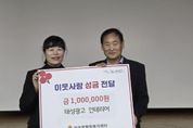 [경기남부뉴스 홍복순 기자] 연천군 전곡읍에 소재한 태성광고 인테리어는 지난 11일 지역사회 어려운 이웃을 돕기 위한 성금 100만원을 경기 사회복지공동모금회를 통해 전곡읍지역사회보장협의체에 기탁했다. 이상훈 대표는 전곡읍지역사회보장협의체 민간위원장으로 활동하면서 지역의 사회보장 증진과 현장밀착형 사회복지 서비스 제공을 위해 다양한 사업을 추진하는 등 꾸준한 나눔과 기부를 통해 지역사회에 귀감이 되고 있다. 오릴리 전곡읍장은 “어려운 여건 속에서도 지속적인 기부와 봉사, 지역사회 나눔 실천을 위해 앞장서고 계시는 이상훈 위원장님께 감사드린다”며 “앞으로도 민관이 협력해 찾아가는 맞춤형 복지서비스 지원을 위해 최선을 다하겠다”고 밝혔다. 기탁된 성금은 사회복지공동모금회 전곡읍지역사회보장협의체 지정기탁금으로 적립돼 복지사각지대 가구 등 우리 주변의 어려운 이웃을 돕기 위한 협의체 특화사업에 소중하게 사용될 예정이다.