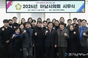 [경기남부뉴스 김혜숙 기자] 평택시의회는 2일, 시의회 간담회장에서 의원 및 의회사무국 직원 등 60여 명이 참석한 가운데 2026년 시무식을 가졌다. 이날 시무식은 새해 의정활동에 대한 방향을 제시하고 각오를 새롭게 다지기 위해 마련됐으며, 강정구 의장과 의원들은 신년 인사를 나눈 후 의정활동에 대한 포부를 밝혔다. 이어서 평택시장 및 실·국·소·장들과 티타임을 가졌다. 강정구 의장은 신년사를 통해 “2026년은 추진력 있는 붉은 말의 해인 만큼 18명의 의원님들과 의회사무국 직원 모두가 성장을 도모하고 가정에도 번영이 함께하는 한 해가 되길 바란다”라고 하며, “제9대 평택시의회가 올해 임기를 마무리하는 만큼, 마지막까지 흔들림 없이 시민만을 바라보며 소통하는 의정활동을 펼쳐주시길 바란다”라고 밝혔다. 한편, 평택시의회는 오는 2월 3일 제260회 임시회를 시작으로 정례회 2회, 임시회 5회 등 총 7회, 83일간의 2026년 의사일정을 진행할 계획이다.