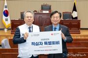 [경기남부뉴스 김혜숙 기자] 구리시의회가 1월 15일 구리시의회 의장실에서 대한적십자사 경기지사에 2026년도 적십자 특별회비를 전달하며 어려운 이웃을 위한 따뜻한 나눔 활동에 동참했다. 이날 전달식에는 신동화 의장, 대한적십자사 우광호 사무처장, 대한적십자사봉사회 경기도협의회 함정현 부회장, 대한적십자사봉사회 구리지구협의회 김복조 회장 등 10여 명이 참석했다. 구리시의회는 복지 사각지대에 놓인 취약 계층을 지원하고 긴급재난구호와 공공의료, 국제 협력 등 적십자사의 다양한 인도주의 활동에 동참하기 위해 매년 적십자 특별회비를 전달하고 있다. 신동화 의장은“어려운 여건 속에서도 취약 계층에 대한 지원과 봉사 활동으로 어려운 이웃들에 큰 희망이 되어주고 있는 대한적십자사의 노고에 깊은 감사를 드리며, 새로운 희망과 꿈을 꿀 수 있도록 도움이 필요한 곳에 등불이 되어주시길 바란다.”라며, “구리시의회도 지역사회에 따뜻한 나눔의 문화가 확산될 수 있도록 적극 노력할 것이며, 저도 의장으로서 또 적십자 회원으로서 인도, 공평, 중립, 독립, 자발적 봉사, 단일, 보편이라는 적십자 정신이 온 사회에 실현될 수 있도록