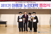 [경기남부뉴스 김혜숙 기자] 의왕시(시장 김성제)는 (사)대한노인회 의왕시지회(지회장 이종훈) 부설 아름채노인대학(학장 김우남)과 사랑채노인대학(학장 이원복)이 12월 2일과 4일, 아름채노인복지관과 사랑채노인복지관에서 2025학년도 졸업식을 성황리에 개최했다고 밝혔다. 박제천 의왕시 노인지회 수석부회장의 노인강령 낭독으로 시작된 이날 졸업식은 졸업장 및 표창장 수여, 노인대학장 회고사, 학생회장 사은사 및 내빈 축사 순으로 진행됐다. 제11기 아름채노인대학과 제21기 사랑채노인대학은 지난 3월 개강하여 주 1회 교양, 건강관리, 문화강좌, 현장체험 등 다양한 프로그램을 운영하며 어르신들의 건전한 여가선용과 배움의 터전이 되어왔다. 올해에는 총 322명(아름채 164명, 사랑채 158명)의 졸업생이 모든 과정을 마치고 자랑스러운 학사모를 쓰게 됐다. 이종훈 지회장은 격려사에서 “평생교육을 몸소 실천하며 배움의 끈을 놓지 않으시는 어르신 여러분께 박수를 보낸다”며 “배움은 끝이 없으니 100세까지 건강하게 공부하며 지내시길 바란다”고 전했다. 김성제 시장은“건강하게 졸업식에 참여하신 어르신들과 수상자 모두에게 축하의 말씀을 전한다”며, “앞으로 어르신들이 더욱