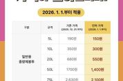 [경기남부뉴스 김혜숙 기자] 의왕시가 물가 상승 및 경기 침체로 인한 시민들의 경제적 부담을 완화하기 위해 2026년 1월 1일부터 쓰레기 종량제봉투 판매가격을 인하한다. 이번 가격 인하 대상은 일반용 및 재사용 종량제봉투이며, ▲5리터 봉투는 190원에서 150원으로 ▲10리터 봉투는 350원에서 300원으로 ▲20리터 봉투는 680원에서 550원으로 인하된다. 또한, ▲50리터 봉투는 1,700원에서 1,400원으로 ▲75리터 봉투는 2,630원에서 2,100원으로 각각 조정된다. 가격 인하 이전에 구매한 종량제봉투는 그대로 사용 가능하고, 음식물 종량제봉투, 공사장 생활폐기물 포대, 대형폐기물 신고필증은 가격 등은 변동 없다. 김성제 시장은 “종량제봉투는 시민 생활과 밀접한 만큼, 이번 가격 인하가 가계 부담 완화에 도움이 되길 바란다”며, “가격 인하 시점이 2026년 1월 1일이므로, 그전까지 각 가정에서 필요한 양만 구입해 주시길 바란다”고 전했다.