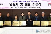 [경기남부뉴스 김혜숙 기자] 용인특례시는 3일 본관 4층 전겹실에서 일자리 창출에 힘쓴 지역 우수기업 8곳에 인증서와 현판을 수여했다. 이번에 선정된 기업은 ▲아산디앤씨 주식회사 ▲일승푸드 제2공장 ▲주식회사 에이치에스씨 ▲㈜인실리코젠 ▲주식회사 홈체크 ▲㈜휴먼인텍 ▲케이제이건설산업(주) ▲트루션 등 총 8개사다. 시는 1차 서류심사와 2차 현장실사를 거쳐 일자리 창출 실적, 고용 안정성, 기업의 성장 가능성, 근로환경 등을 종합적으로 평가해 우수기업을 선정했다. 이들 기업은 최근 1년간 총 74명(기업당 4~19명)을 신규 채용해 지역 내 일자리 창출에 기여했다. 또, 다양한 직원복지제도로 근무하기 좋은 환경을 조성해 일자리의 질을 높이는 데 크게 힘쓴 것으로 평가됐다. 이들 기업에는 인증서와 현판이 수여되며, 시가 주최하는 일자리사업, 기업지원사업 참여 시 가점이 주어진다. 일자리박람회 등 채용 행사에도 우선적으로 참여할 수 있다. 용인특례시 일자리창출 우수기업 인증제는 2018년부터 시행되고 있으며, 매년 고용 확대와 일자리 창출에 기여한 기업을 발굴·지원하고 있다.