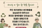 [경기남부뉴스 김혜숙 기자] 양평군은 관내 쓰레기 배출장소 및 취약지역의 무단투기 방지를 위해 주민 참여 기반의 청결유지 캠페인을 추진하고 있다고 밝혔다. 이번 캠페인은 기존의 폐기물 불법투기 단속 위주의 방식에서 벗어나 주민 참여를 통해 무단투기를 선제적으로 방지하고자 마련된 것으로, 주요 쓰레기 거점 배출장소와 분리수거장, 무단투기 취약지역 등에 주민 참여를 유도하는 안내판을 붙이는 방식으로 시행되고 있다. 기존 무단투기 방지 안내판은 폐기물관리법에 따른 과태료나 처벌 중심의 경고성 문구가 위주였으나, 이번 캠페인을 통해 설치되는 안내판에는 주민의 분리배출에 대한 감사의 메시지와 이를 통한 양평군의 발전 내용을 담고 있다. 한 주민은 “과태료 경고문만 보던 곳에 따뜻한 칭찬 문구가 붙어 있어 마음이 따뜻해졌다”며 “양평군에 대한 신뢰와 고마움을 느끼며 스스로 분리배출을 더 잘 실천해야겠다는 생각이 들었다”고 말했다. 전진선 양평군수는 “군민이 체감하는 청결한 양평을 만들기 위해서는 무단투기 방지가 중요하다”며 “군민 여러분의 적극적인 참여를 부탁드리고, 앞으로도 지속적인 홍보와 관리 강화를 통