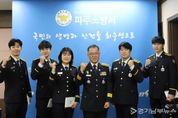 [경기남부뉴스 홍복순 기자] 파주소방서는 1일 본서 서장실에서 근속승진 대상자 11명에 대한 계급장 수여식을 실시했다. 이번 수여식에서는 소방위로 승진한 오진숙, 소방장으로 승진한 변지훈, 정인렬, 양승현, 김우진 소방공무원이 참석해 계급장을 수여받았다. 근무 및 개인 일정으로 참석하지 못한 김병규, 정호석, 추정규, 배달선, 김창한, 박광은에 대해서는 각 부서장이 소속 센터에서 별도로 계급장을 수여할 예정이다. 승진자들은 앞으로 화재·구조·구급 등 최일선 현장에서 시민의 생명과 안전을 지키는 임무를 수행하게 된다. 김명찬 서장은 “시민의 안전을 위해 묵묵히 소임을 다해온 승진자 여러분께 진심으로 감사드리며, 승진을 다시 한번 축하드린다”며 “책임과 역할이 한층 더 커진 만큼, 소방대원으로서의 사명감과 자부심을 갖고 현장에서 최선을 다해주기 바란다”고 당부했다.