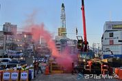 [경기남부뉴스 김혜숙 기자] 서울시는 최근 홍콩에서 발생한 대형 화재사고를 반면교사로 삼아, 겨울철 화재발생 위험이 높은 공사장을 대상으로 한 화재 대응 모의훈련을 12월 2일 미아사거리 일대, 동북선 도시철도 공사현장(2공구 107정거장)에서 실시했다고 밝혔다. 이번 훈련은 가시설 해체 중 발생한 불티가 주변으로 확산돼 화재가 발생한 상황을 가정해 진행됐다. 초기 대응(사고자 발견과 상황 전파), 비상 대응(응급처치와 구급차 유도·후송), 수습 복구(현장 정리 및 복구) 순으로 전 과정이 실제 상황처럼 전개됐다. 서울시(도시기반시설본부), 동북선 도시철도 사업시행자·시공사, 성북소방서, 강북경찰서, 도시가스·전기 업체 등 유관기관이 참여해 협조체계를 점검하고 기관별 역할을 숙달하는 데 중점을 뒀다. 훈련에는 소방관·경찰관·현장 근로자 등 50여 명이 참여했고, 소방차·구급차·경찰차 등 관련 장비도 투입돼 실전처럼 진행됐다. 서울시는 이번 화재 대응 훈련 외에도, 건설 현장에서 자주 발생하는 6대 사고 유형에 대한 대응 역량을 강화하기 위해 연중 모의훈련을 꾸준히 진행하고 있다. 6대 사고 유형은