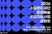 [경기남부뉴스 김정옥 기자] 수원문화재단은 오는 9일부터 지역 문화예술인 및 단체를 위한 2026년도 수원 문화예술지원사업 공모를 시작한다. 이번 공모지원사업은 지역 문화예술인의 자율적이고 다양한 문화예술 창작‧활동을 지원하기 위해 마련됐다. ▲문화예술 창작지원사업 ▲유망예술가 지원사업 ▲경기예술활동 지원사업 ▲형형색색 문화예술지원사업 등 총 4개 사업을 진행한다. 이번 공모도 전년도와 동일하게 ▲지원분야 간소화 및 일원화 ▲청년예술인 우대(유망예술가 지원사업) ▲원로예술인 및 장애예술인 대상 우선할당제(형형색색 문화예술지원사업)가 적용된다. 먼저 ‘문화예술 창작지원사업’은 지역 전문예술인 및 단체의 창작활동 활성화를 위한 사업이다. 지원 분야는 2025년부터 기존 4개 분야에서 공연/시각/문학 3개 분야로 변경됐으며, 미발표 신작에 한하여 신청이 가능하다. 사업비는 총 8,000만원으로 건당 지원금은 분야별로 상이하다. ‘유망예술가 지원사업’은 활동경력 5년 이내의 지역 신진예술가 및 단체의 창작활동 활성화를 위한 사업이다. 공연/시각 총 2개 분야의 창작 및 실연을 지원한다. 올해도 청년예술인