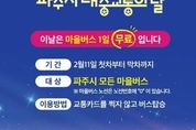 [경기남부뉴스 김혜숙 기자] 파주시는 ‘대중교통의 날’을 맞아 대중교통 이용 활성화와 시민 교통비 부담 완화를 위해 오는 2월 11일 하루 동안 파주시 전 지역의 모든 마을버스를 무료로 운행한다. 이번 마을버스 무료 운행은 시민들의 자가용 이용을 줄이고 대중교통 이용을 촉진함으로써, 교통 혼잡 완화와 탄소 배출 저감 등 친환경 교통 문화 확산을 도모하기 위해 지난해에 이어 두 번째로 시행되는 행사다. 무료 이용 대상은 파주시민뿐만 아니라 파주시를 운행하는 마을버스 노선을 이용하는 모든 승객이다. 이용 방법은 간단하다. 승차 시 현금이나 교통카드 단말기를 찍지 않고 별도의 절차 없이 탑승하면 이용 요금이 전액 면제되며, 하차 시에도 카드 단말기를 찍지 않아야 한다. 단, 다회 환승에 따라 환승 시간이 필요한 경우에는 교통카드를 찍고 이용할 수 있다. 박한수 버스정책과장은 “대중교통의 날을 맞아 시행하는 마을버스 무료 이용이 시민들에게 대중교통을 보다 친숙하게 이용하는 계기가 되길 바란다”라며, “앞으로도 시민들의 교통 편의를 높이고 보다 효율적인 대중교통 서비스를 제공하기 위해 지속적으로 노력하겠다