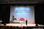 [경기남부뉴스 김혜숙 기자] 동두천시는 2026년 병오년(丙午年) 새해를 맞아 1월 2일 오후 2시 시민회관 공연장에서 시민과 함께하는 ‘2026년 시무식’을 개최했다. 이번 시무식은 시립이담농악단의 병오년 ‘붉은 말의 해’를 알리는 웅장하고 경쾌한 북소리로 막을 열었다. 이어 전통 농악 장단을 현대적으로 재해석한 타악 퍼포먼스와 시립합창단의 ‘새로운 길’, ‘개선행진곡’, ‘위풍당당 행진곡’ 공연이 이어지며 희망찬 새해의 시작을 알렸다. 박형덕 동두천시장은 '2026년 시민과 함께하는 시무식'에서 ‘동두천을 새롭게! 시민을 힘나게! 시민이 행복한 도시! 매일 활력 넘치는 동두천을 위하여!’라는 구호와 함께 힘찬 타고식을 진행하며 시민의 행복과 도시의 활력을 강조했다. 또한 박 시장은 “민선 8기 4년 차를 맞는 2026년 시정의 핵심 키워드를 ‘일로매진(一路邁進)’으로 삼겠다”라며 “미군 공여지 피해 규모 및 발전계획 연구용역을 통해 정부의 확실한 보상과 지원을 이끌어내고, 평화로 가로환경 정비사업으로 보행 공간을 확장하며, 동두천중앙역세권 일대 도시재생사업을 통해 시민을 위한 문화공간과 기반 시설을 확충하