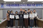 [경기남부뉴스 김정옥 기자] 수원특례시이 29일 시청 상황실에서 ‘수원새빛돌봄(누구나) 서비스 제공기관 재협약 협약식’을 열고, 서비스 제공기관들과 재협약을 체결했다. 이날 협약식에는 김인배 시민복지국장, 수원새빛돌봄(누구나) 서비스 제공기관 관계자 등이 참석했다. 수원새빛돌봄(누구나) 재협약 대상 서비스 기관은 17개소다. 제공서비스는 생활돌봄·동행돌봄 5개소, 생활돌봄 1개소, 주거안전 3개소, 식사지원 5개소, 일시보호 2개소, 재활돌봄 1개소로 구성됐다. 협약 기간은 2026년 1월 1일부터 2027년 12월 31일까지 2년이다. 이날 수원시는 재협약 기관에 사업 내용과 제공기관의 주요 역할을 안내했다. 수원시 관계자는 “올해로 협약이 끝나는 제공기관을 심사해 17개소와 재협약을 체결했다”며 “기존 운영 경험을 바탕으로 시민의 돌봄 공백을 메우는 역할을 이어가길 바란다”고 밝혔다.