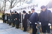 [경기남부뉴스 김혜숙 기자] 의왕시가 신년을 맞이해 1일, 현충탑에서 국가를 위해 헌신한 분들의 숭고한 희생정신을 기리는 참배를 진행했다. 이날 참배에서는 안치권 부시장, 김학기 의왕시의회 의장, 이소영 국회의원, 시의원, 도의원, 보훈·안보 단체 회원 등 90여 명이 참석해 나라를 위해 헌신한 참전유공자 및 독립 유공자를 추모하는 헌화와 분향을 진행했다. 참석자들은 이날 진심을 담은 참배를 통해 선열들의 뜻을 되새기며, 시 발전과 시민 화합을 위해 힘을 모을 것을 다짐했다.