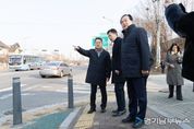 [경기남부뉴스 김혜숙 기자] 김동연 경기도지사가 30번째 민생경제 현장투어(달달버스)차 23일 오산시 외삼미동 북오산IC를 방문해 상습 정체 구역의 상황을 점검하고 교통체증 해소를 약속했다. 김 지사는 이권재 오산시장, 관계 공무원 등과 함께 주변 도로 여건을 직접 살피며 북오산IC 진입로 정체 원인과 개선 방안을 확인했다. 김 지사는 현장에서 “이곳은 오산시에서도 가장 교통 체증으로 유명한 곳”이라며 “오산시와 함께 북오산IC 2차선 도로를 3차선 도로로 넓혀 교통 체증을 해소하겠다. 빠른 시간 내에 확장할 수 있도록 최선을 다하겠다”고 말했다. 북오산IC는 수도권제2순환고속도로와 경부고속도로를 연결하는 경기 남부권 핵심 교통 거점이다. 오산 북부 생활권과 인근 산업·물류 이동의 주요 관문 역할을 하고 있으나, 진입로 차로 수 부족과 교차로 병목으로 출퇴근 시간대 극심한 정체가 반복돼 왔다. 특히 문시로를 통해 북오산IC로 진입하는 구간은 차로 변경 구간이 짧아 대기행렬이 길게 형성되는 데다 무리한 차로 변경으로 교통사고 위험도 지속적으로 제기돼 왔다. 실제 해당 구간의 대기행렬 길이는 최대 210m에 달하는 것으로 분석됐다. 오산시는 이를 해소하기 위해