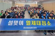 [경기남부뉴스 김혜숙 기자] 평택시 중앙동은 지난 12일, 설 명절을 맞아 고향을 찾는 귀성객과 지역 주민들에게 쾌적한 환경을 제공하기 위해 서정리역 및 서정리 전통 시장 일원을 중심으로 대대적인 합동 환경정화활동을 펼쳤다. 이번 ‘우리동네 새단장’을 위한 설맞이 대청소 활동은 중앙동 주민자치회, 통장협의회 등 12개 단체 회원 110여명이 참여하여 시장 주요 출입구와 골목 상권, 버스정류장 주변 및 무단투기 취약지역을 중심으로, 방치된 생활쓰레기와 불법 광고물 등을 집중 정비했다. 이병철 단체장협의회장은 “바쁜 일정 중에도 깨끗한 마을 만들기를 위해 마음을 모아준 각 단체 회원분들게 감사드린다”며 “고향을 방문하는 분들이 쾌적한 환경에서 가족과 함께 따뜻한 명절을 보내시길 바란다”고 전했다. 허명경 중앙동장은 “설 명절을 앞두고 주민들과 함께 힘을 모아 마을을 정비하게 되어 뜻깊다”며 “앞으로도 민‧관이 함께하는 환경정비 활동을 통해 살기 좋고 활력 넘치는 중앙동을 만들어 가겠다”고 말했다.