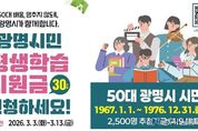 [경기남부뉴스 김혜숙 기자] 광명시가 50대 중장년 시민의 배움 기본권 보장을 위해 올해도 평생학습지원금 지원을 이어간다. 시는 오는 3월 3일부터 13일까지 11일간 ‘2026년 광명시민 평생학습지원금’ 신청을 받는다고 26일 밝혔다. 광명시민 평생학습지원금은 생애 전환기를 맞은 50대 시민이 나이·소득·배경과 관계없이 배움을 지속할 수 있도록 생애 1회 1인당 30만 원의 평생학습이용포인트를 지원하는 사업이다. 시민 스스로 자신의 삶과 필요에 맞는 학습을 선택하도록 돕는 것이 핵심 목적이다. 박승원 광명시장은 “배움은 선택이 아닌 누구에게나 보장돼야 할 기본권”이라며 “시민이 나이나 환경의 제약 없이 언제든지 배움을 이어갈 수 있도록 평생학습 기반을 더욱 탄탄히 만들어가겠다”고 밝혔다. 신청 대상은 1967년 1월 1일부터 1976년 12월 31일 사이에 출생한 50대 광명시민이다. 광명시에 1년 이상 계속 거주했거나, 거주기간을 합산해 5년 이상 거주하고 있어야 한다. 시는 총 2천500명을 선정해 지원한다. 59세(1967년생)는 올해가 마지막 지원 대상임을 고려해 우선 선정하