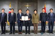 [경기남부뉴스 김정옥 기자] 이재준 수원특례시장과 수원 국회의원 5명이 안규백 국방부장관과 면담하고, ‘수원 군 공항 이전의 국가전략 사업화를 위한 공동 건의문’을 전달했다. 안규백 장관은 “수원 군 공항 이전이 장기간 답보 상태에 있다”며 “모멘텀 마련을 위해 수원시, 화성시를 방문해서 적극적으로 의견을 수렴하겠다”고 밝혔다. 이재준 시장과 백혜련(수원시을)·김영진(수원시병)·김승원(수원시갑)·염태영(수원시무)·김준혁(수원시정) 의원은 8일 국방부를 방문해 건의문을 전달하고, “수원 군 공항 이전은 국방력을 강화하고, 국민 피해를 해소하기 위한 국가전략 사업”이라며 “군 공항 이전 사업이 조속하게 이뤄지도록 정부 차원에서 적극적으로 지원해 달라”고 요청했다. 건의 사항은 ▲국방부 주관 ‘군 공항 이전 태스크포스(TF)’ 구성·운영 지원 ▲국무총리실 산하 ‘갈등조정협의체’ 구성·운영 지원 ▲종전 부지 내 국가 첨단전략산업(인공지능, 방위산업) 단지 조성 지원 등이다. 안규백 장관은 “답보 상태인 수원 군 공항 이전 사업의 모멘텀을 마련하기 위해 수원시와 화성시를 방문해 적극적으로 의견을 수렴하겠다”고 밝혔다.