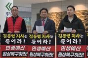 [경기남부뉴스 김혜숙 기자] 경기도의회 교육기획위원회 김호겸 의원(국민의힘, 수원5)은 2025년 12월 3일 백현종 경기도의회 국민의힘 대표의원을 중심으로 경기도의회 교육기획위원회 위원 및 교육행정위원회 위원들과 함께 김동연 지사가 팽개치고 있는 경기도 민생예산 복구를 촉구했다. 김호겸 의원은 경기도의회 국민의힘 ‘민생예산 원상복구 촉구 결의대회’ 시작 전 부쩍 수척해진 백현종 대표의원에 대한 안타까운 마음과 존경의 뜻을 전했다. 김호겸 의원은 “김동연 지사는 머릿속에서 경기도민을 지웠는가?”라고 개탄(慨嘆)하면서, “김동연 지사가 경기도민의 민생을 팽개치고 치적을 쌓는 것에만 집중하는 것은 ‘21세기판 가렴주구(苛斂誅求)’”라 일갈했다. 김 의원은 특히 “정조대왕이 백성들의 삶을 안정시키고 나라를 부강하게 하고자 하는 애민정신(愛民精神)을 바탕 건설했던 화성이 있는 이곳 수원에서 민생예산을 볼모로 정치적 마이웨이(My way)를 하려는 김동연 지사의 처신이 지금 옳은 것이냐?”라고 강하게 성토했다. 김호겸 의원은 “정치가 무엇이냐? 정치의 알파(A)와 오메가(Ω)는 ‘민생’일 뿐이다”라고 강조