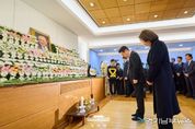 [경기남부뉴스 김혜숙 기자] 이재명 대통령과 김혜경 여사가 1월 27일 서울 종로구 서울대병원 장례식장에 마련된 고 이해찬 전 총리 빈소를 찾아 영정을 향해 묵념하고 있다.