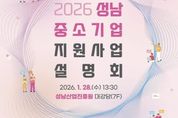 [경기남부뉴스 김혜숙 기자] 성남시는 성남산업진흥원과 함께 오는 1월 28일 성남산업진흥원 대강당(정자동 킨스타워 7층)에서 ‘2026 성남 중소기업 지원사업 설명회’를 개최한다. 이번 설명회에서는 참석 기업을 대상으로 자금, 수출, 연구개발(R&D), 기술보호, 소상공인 지원, 고용 지원 등 다양한 분야의 중소기업 지원사업을 종합적으로 안내할 예정이다. 행사에는 성남시와 성남산업진흥원을 비롯해 경기중소벤처기업청, 중소벤처기업진흥공단, 코트라(KOTRA), 기술보증기금, 신용보증기금 등 총 14개 기관이 참여해, 성남 지역 기업들이 여러 기관의 지원제도를 한자리에서 확인할 수 있는 기회를 제공한다. 아울러 설명회 당일에는 지원사업 안내 책자를 배포하고, 참여 기관별 1:1 상담 부스를 운영해 기업 상황에 맞는 맞춤형 상담을 진행할 계획이다. 성남산업진흥원 이창주 경영안전실장은 “이번 설명회는 지역 기업들에게 지원사업을 보다 신속하게 안내하기 위해 지난해보다 일정을 앞당겨 개최하게 됐다”며 “더 많은 기업들이 참석해 2026년 지원사업을 이해하고 적극 활용하기를 바란다”고 말했다. 설명