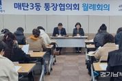 [경기남부뉴스 김정옥 기자] 수원시 영통구 매탄3동은 지난 24일 시정 및 동정 소식 공유를 위한 2월 통장협의회 월례회의를 개최했다. 이날 회의에서는 '새빛 생활비 패키지' 사업 중 하나인 △여성 청소년 생리용품 보편 지원 사업을 비롯하여 △초등 저학년 등하교 동행 돌봄 서비스, △어르신 스포츠상품권 지급 사업 등 시민 홍보가 필요한 주요 사업들을 공유했다. 아울러 ‘제9회 전국동시지방선거’를 대비해 통장의 선거운동 금지와 정치적 중립 의무 등 '공직선거법' 관련 유의 사항을 공유하고 준수를 당부했다. 김병목 매탄3동장은 “주민과 가장 가까운 곳에서 소통해주시는 통장님들의 노고에 감사드린다”며 “앞으로도 통장협의회와의 긴밀한 협력체계를 유지하여 살기 좋은 매탄3동 조성을 위해 노력하겠다”고 말했다.